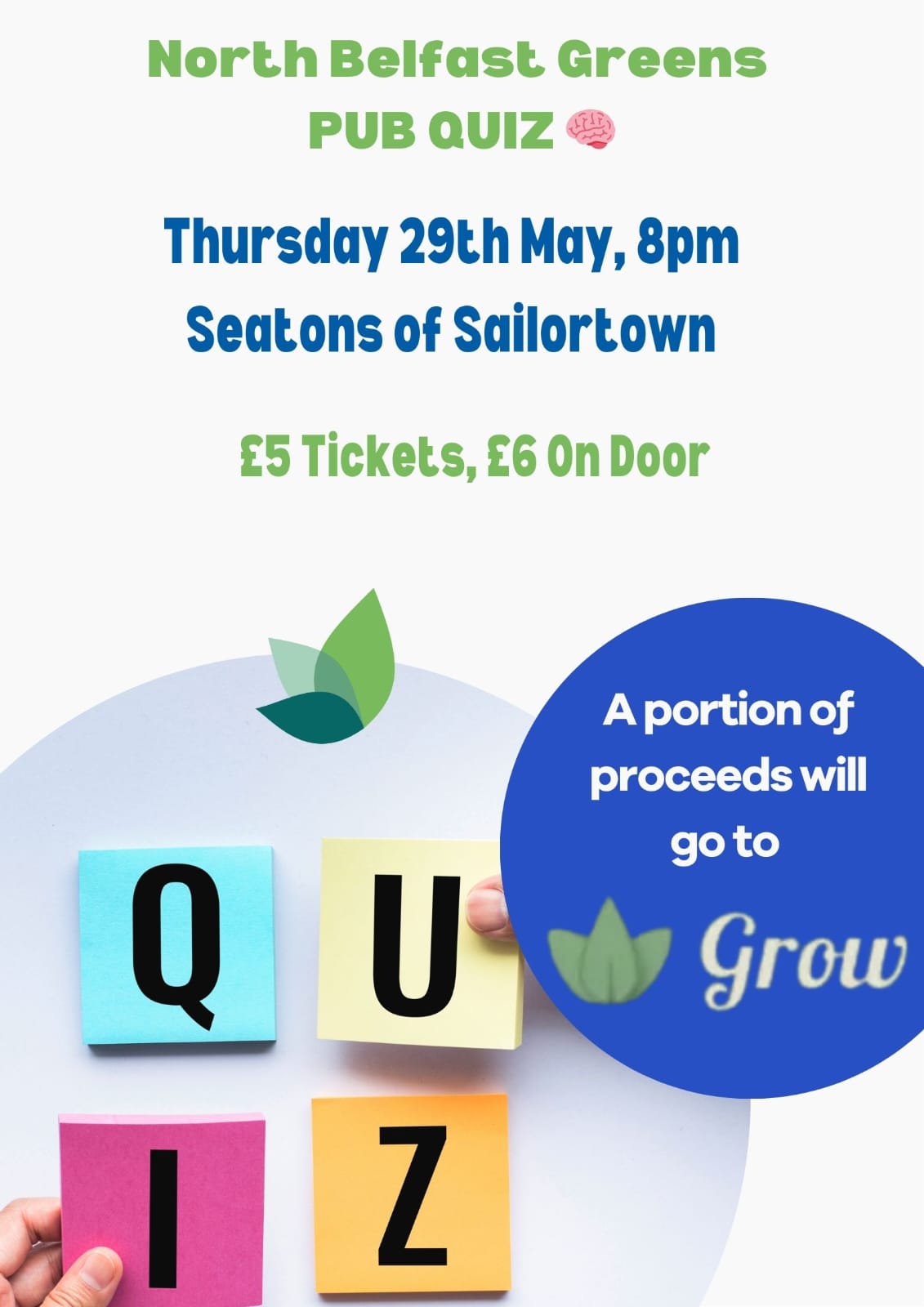 Come along and test your knowledge at the North Belfast Green's PUB QUIZ!